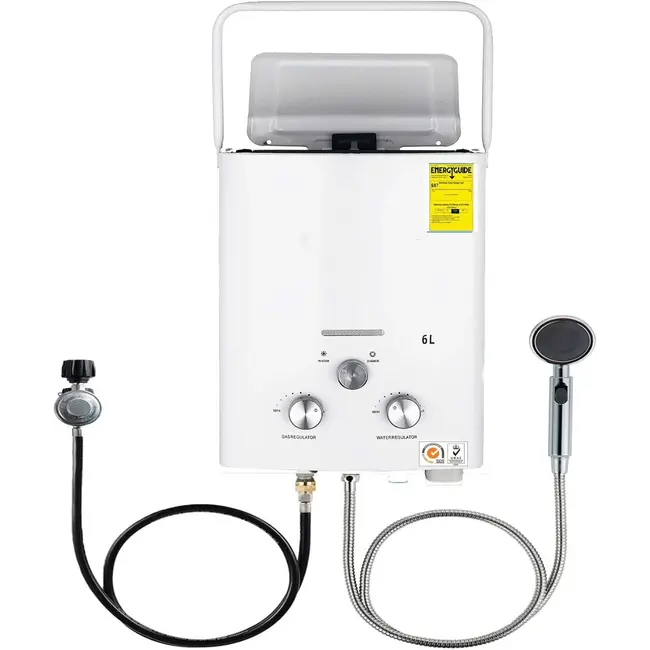 Le geyser est léger et portable. De plus, il est doté d'une poignée pratique et d'un support. Il est donc facile à déplacer et idéal pour le camping ou les vacances.