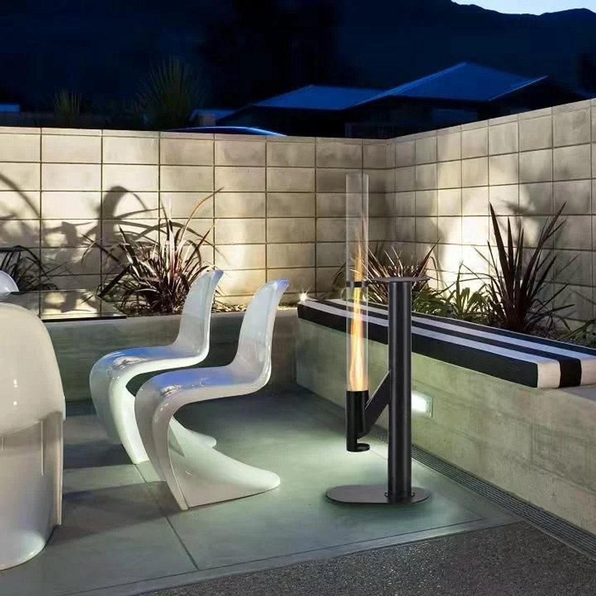 Avec sa forme verticale élancée, le Rocket Heater prend peu de place, tandis que la construction en acier noir mat lui confère un aspect robuste et industriel. Le tube en verre laisse les flammes danser magnifiquement ‚Äì un véritable créateur d'ambiance pour chaque jardin. De plus, un plateau pratique se trouve sur le HeatRocket, parfait pour poser votre boisson ou collation tout en profitant de la chaleur.